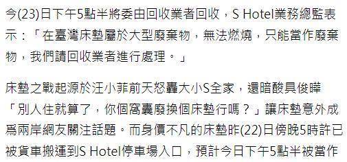 台媒采访SHotel事务总监,他表明床垫不能燃烧:“在台湾,床垫归于大件废物,不能燃烧,只能当废物处理,咱们请收回商处理。
