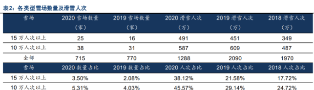 根据全球滑雪报告数据,10万人次以上的滑雪场占全球滑雪场总数的20%,占据所有滑雪人次的80%。