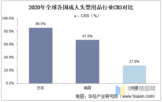 对比海外成熟市场如日本(86.0%)、美国(67.0%),我国成人失禁用品格局分散,2020年CR5仅为27.9%,不过当前行业规模较小,伴随行业扩容,竞争格局仍有变化的可能。