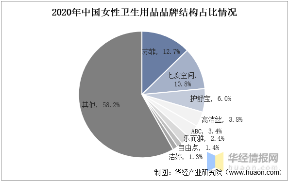 我国卫生巾行业制造商众多,市场之间的竞争激烈,市场集中度较低,众多本土品牌和外资品牌共同参与竞争。多个方面数据显示,外资品牌占据国内主要市场占有率,包括苏菲(尤妮佳)、七度空间(恒安国际,本土企业)等,整体市场规模较低,其中市场排名靠前的参与者还包括宝洁(护舒宝)、景兴(ABC)、金佰利(高洁丝)、花王(乐而雅)等,市场之间的竞争格局近年基本保持稳定。